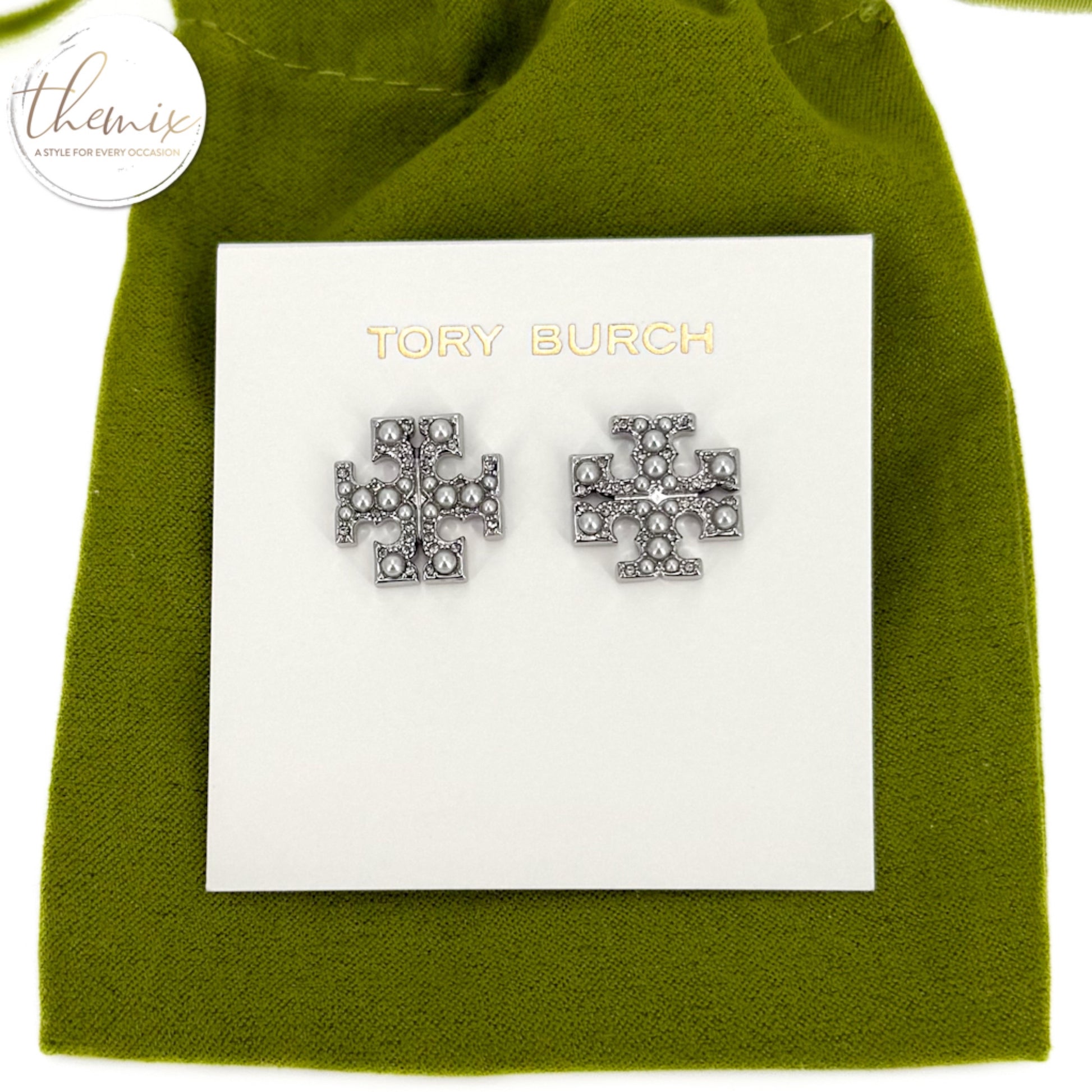 Tory Burch Pearl Pave Logo Stud